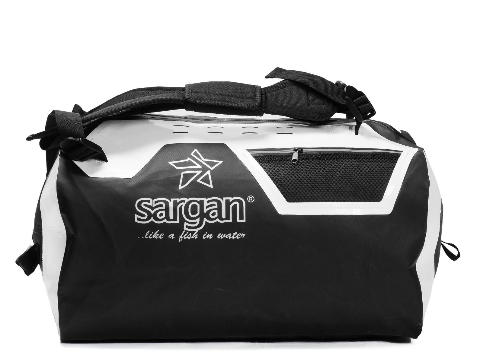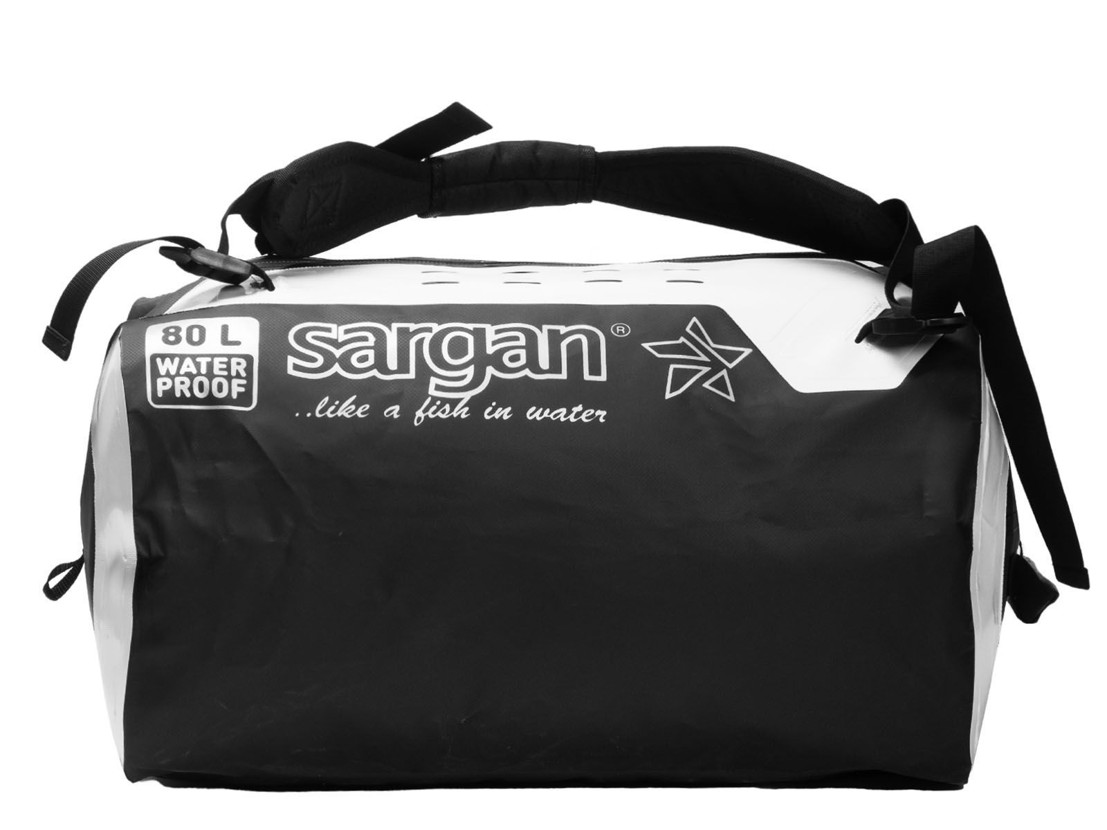 Гермо-Сумка-Рюкзак САРГАН "ПРОГРЕССОР 80.0" Герметичная молния 100%, вкладыш, черный-белый, 80л
