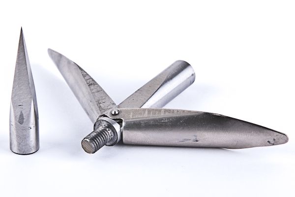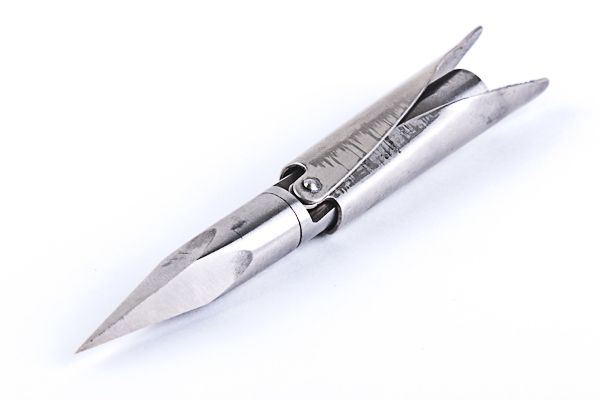 Флажки этого наконечника изготовлены из нержавеющей стали высокого качества, имеют длину 55мм и крепятся на оси-заклёпке диаметром 2 мм. Расположены на одной оси и легко и без усилий открываются и закрываются .