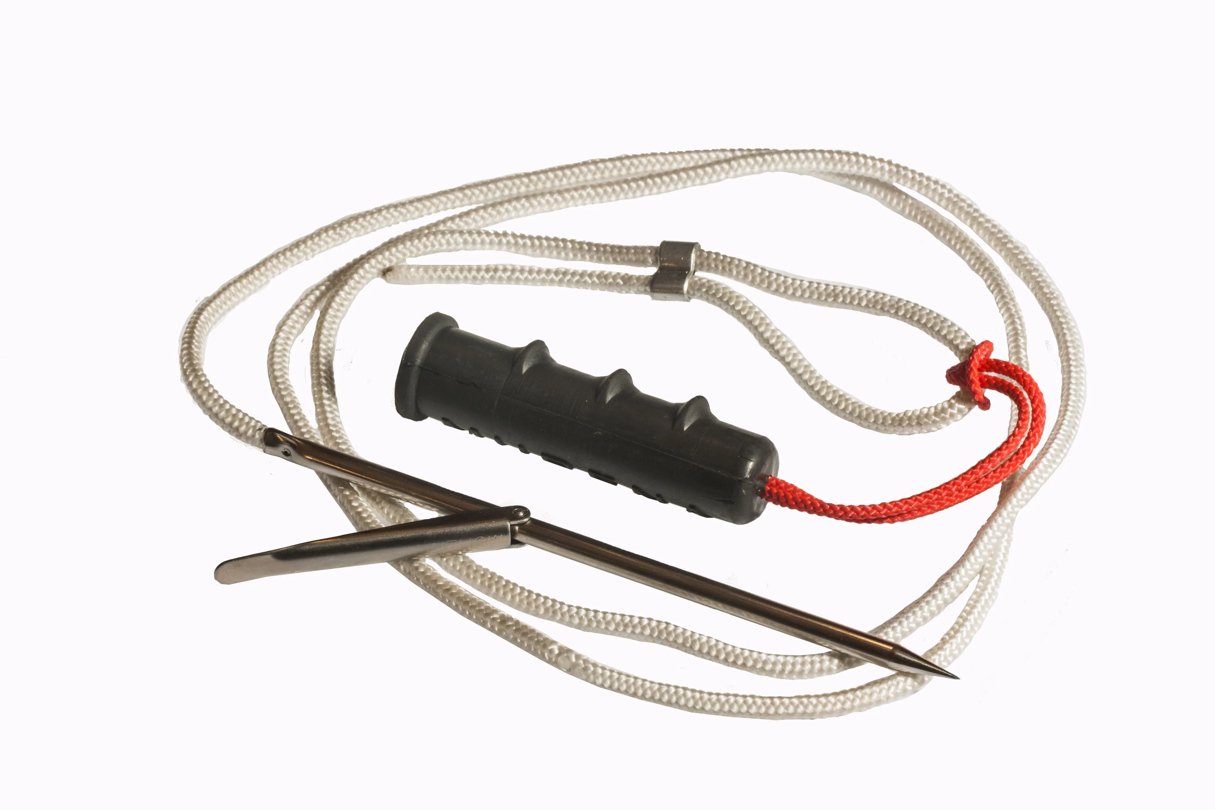 Веревочный кукан с иглой из нержавеющей стали и резиновым держателем.